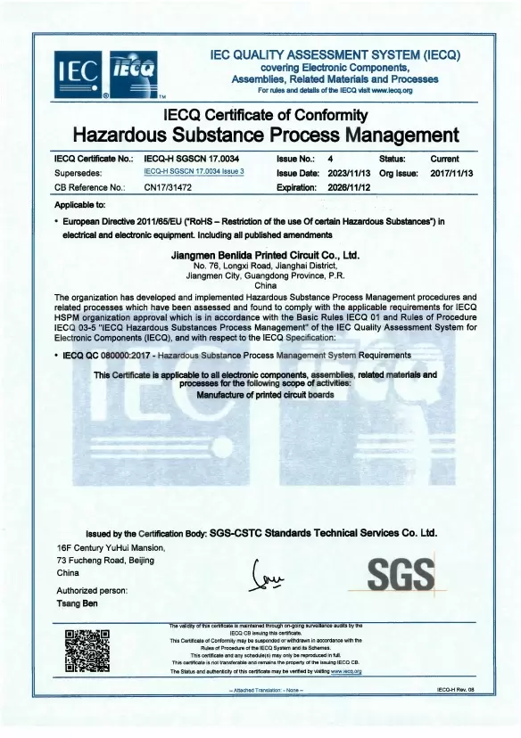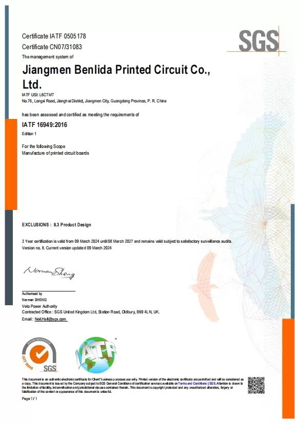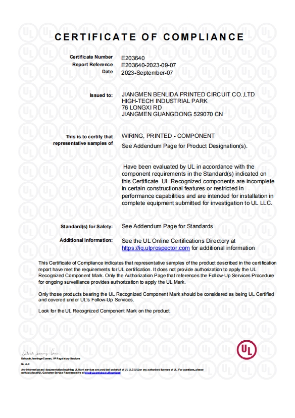 Founded in 2011, Shenzhen Benlida Circuit Co., Ltd. specializes in PCB manufacturing and SMT assembly, delivering reliable solutions backed by years of industry experience. Our operations are supported by a comprehensive set of international certifications, reflecting our strict adherence to quality management, product safety, and environmental protection standards.